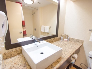 We stayed at the Red Roof PLUS+ in Energy Corridor (check latest prices), west of the city centre. Our room featured a kitchenette with a microwave, full-size fridge, hotplate, and dishwasher.