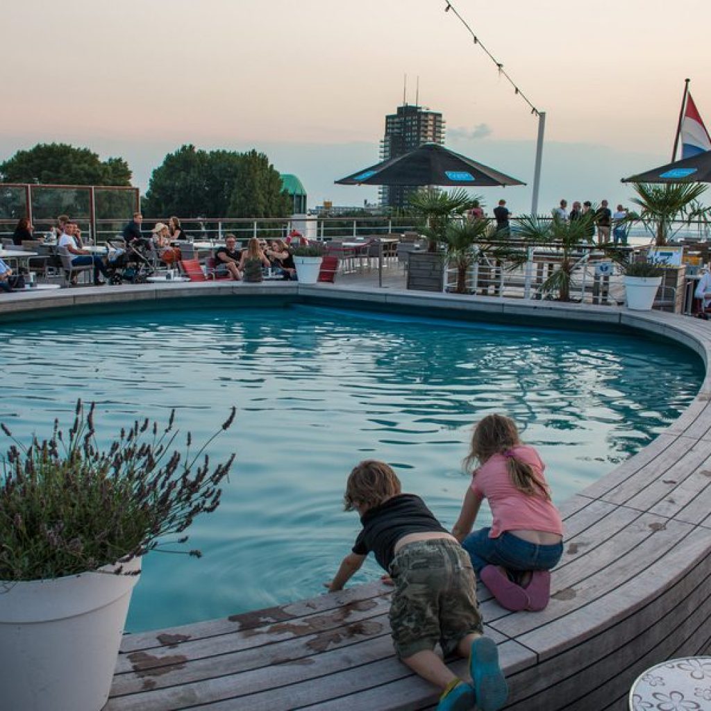 For a unique family stay, we chose the SS Rotterdam, a historic cruise ship docked at Katendrechtse Hoofd. Staying on the ship was an adventure in itself for Mia and Caius, who loved exploring the Captain’s quarters, steering at the helm, and wandering through the theatre and indoor pools.