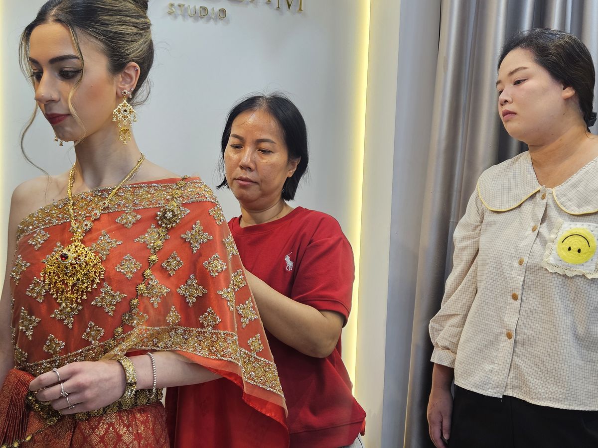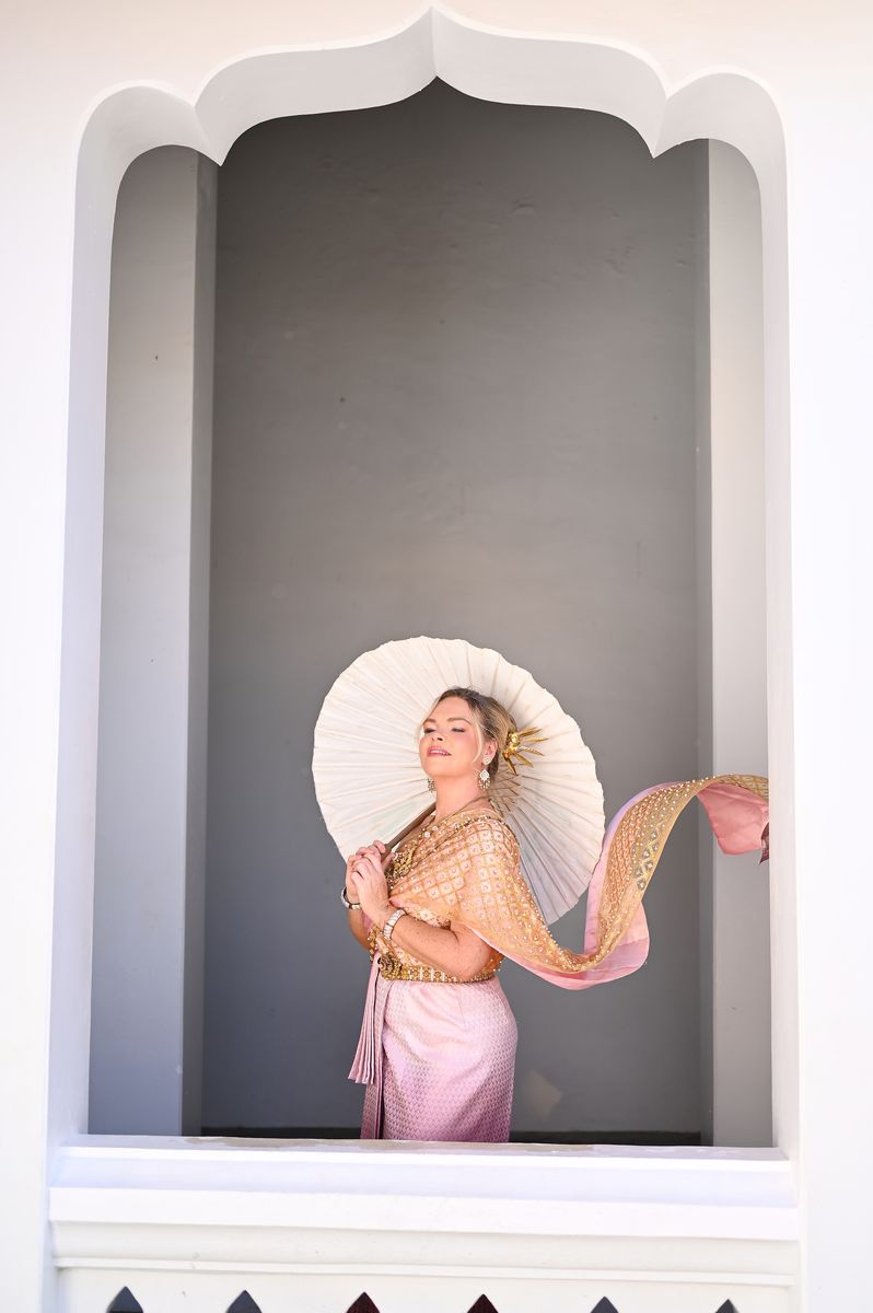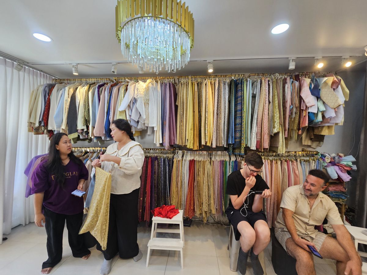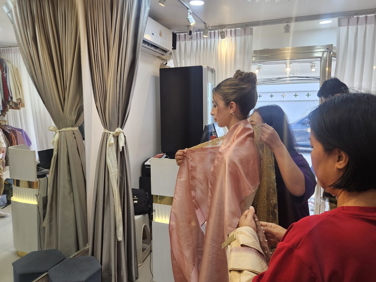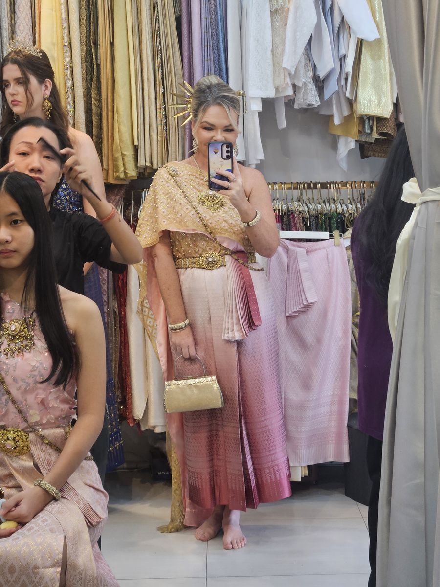 You choose your traditional Thai outfit from an incredible collection of traditional Thai dresses. Every colour, fabric, and style is thoughtfully displayed. The staff know every single piece. They guide you effortlessly.
