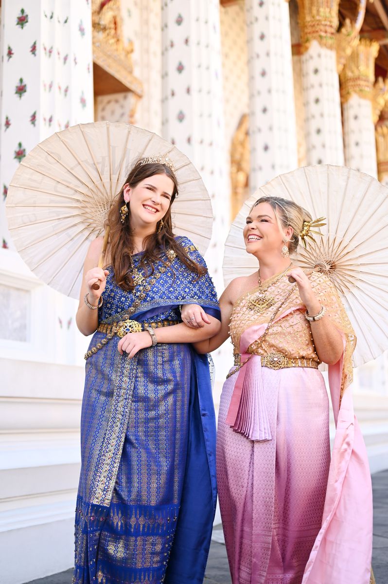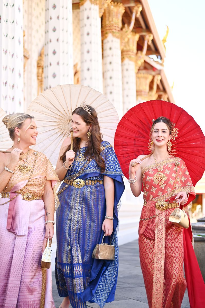 Cover your shoulders and knees. Thai Glam Studio outfits are temple-appropriate, stylish, and photograph perfectly.